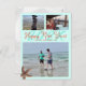Carte postale de Bonne Année sur le thème de la plage. Couleur bleue tropicale avec texte orange et un espace pour imprimer une adresse de messagerie. Téléchargez trois photos, avec deux images plus petites en haut et une photo plus grande en bas. Une étoile de mer marron décore le coin et la date de la nouvelle année est en grands nombres derrière le message de vœux. Si la période des fêtes vous a échappé, envoyez une carte pour la nouvelle année.