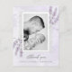 Carte Postale Photo de bébé merci annonce de naissance lavande P