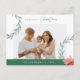 Noël le plus joyeux. Célébrez la saison avec cette carte postale photo familiale Il est entièrement personnalisable et personnalisé avec vos propres messages de voeux. Veuillez ajouter votre adresse de retour pour faciliter l'envoi. Il est simple, facile, mais moderne minimaliste et festif, avec la sauge vert aquarelle botanique Eucalyptus Wreath et le thème de la verdure. C'est la carte postale parfaite pour envoyer vos souhaits de vacances.