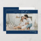 Noël le plus joyeux. Célébrez la saison avec cette photo de famille joli joyeux bonheur Marine Blue hiver et carte postale nouvelle année Il est entièrement personnalisable et personnalisé avec vos propres messages de voeux. Veuillez ajouter votre adresse de retour pour faciliter l'envoi. Il est simple, facile, mais moderne cosy et festif. C'est la carte postale parfaite pour envoyer vos souhaits de vacances.