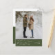 Joyeux Noël. Célébrez la saison avec cette carte postale de photo de famille cosy, mignonne, heureuse, romantique et de couleur vert foncé. Elle est entièrement personnalisable avec vos propres messages de vœux. Veuillez ajouter votre adresse de retour pour un envoi facile. C'est simple, facile et pourtant moderne, cosy et festif. C'est la carte postale idéale pour envoyer vos vœux de fêtes.