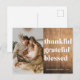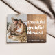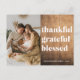 Partagez la chaleur de la saison avec cette carte de vœux de Thanksgiving rustique « Thankful Grateful Blessed », avec une typographie blanche en gras sur un fond en bois riche ainsi que votre photo de famille chérie. Parfait pour envoyer des salutations de vacances sincères ou inviter vos amis et votre famille à votre célébration de Thanksgiving ou de Friendsgiving. Personnalisez avec le nom de votre famille et l'année pour créer un souvenir qui capture l'esprit de gratitude et de convivialité.