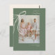 Partagez votre joie de vacances avec cette élégante carte postale de Noël avec un design élégant vert sauge et minimaliste coquette arc dessiné à la main. Parfait pour envoyer des salutations chaleureuses à des amis et à des proches, cette carte de vacances moderne met en valeur votre photo de famille préférée dans le style. Personnalisez-vous avec vos noms et votre année pour un souvenir festif qui se sent à la fois intemporel et contemporain. Un moyen simple mais sophistiqué de répandre la joie de Noël.