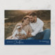 Joyeux Noël. Célébrez la saison avec cette photo de famille carte postale bleue marine cosy mignonne joyeuse bonheur hiver et nouvel an. Elle est entièrement personnalisable et personnalisée avec vos propres messages de vœux. Veuillez ajouter votre adresse de retour pour un envoi facile. C'est simple, facile, mais moderne cosy et festif. C'est la carte postale parfaite pour envoyer vos vœux de vacances.