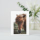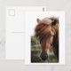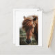 Cette carte postale présente une photo de gros plan d'un cheval brun dans un champ.
