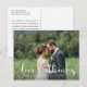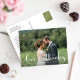 Cette carte postale photo avec fond perdu associe la phrase charmante "love thanks" en écriture blanche fluide avec un accent de cœur doux, créant un souvenir de remerciement chaud et moderne. Votre photo de mariage préférée remplit tout le devant tandis que les noms des couples personnalisables et la date sont affichés ci-dessous dans une écriture propre. Une belle façon d'exprimer sa gratitude et de partager un souvenir précieux avec la famille et les amis.
