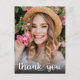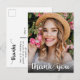 Dites merci avec cette carte postale avec votre photo sur le devant et un remerciement en élégantes lettres blanches. Votre note de remerciement personnalisée au verso ou si vous préférez écrire votre note à la main, il suffit de supprimer le texte pour faire place à votre message. PLUS de modèles dans notre magasin.