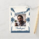 Envoyez un remerciement sincère avec cette carte postale photo à thème tropical ! Avec une silhouette élégante de feuillage dans des tons de bleu et de blanc cassé, une photo personnalisable et les mots 'retraite' et 'merci', cette carte postale est le moyen idéal d'exprimer votre gratitude pour votre célébration de retraite. Partagez votre appréciation avec vos amis et votre famille avec style !