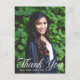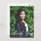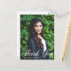 Cette élégante carte postale de remerciement de remise de diplôme avec superposition de typographie blanche présente une écriture blanche chic sur votre photo de diplômé du lycée ou de l'université pour la promotion 2025. Personnalisez avec votre nom et votre classe sous la belle calligraphie et ajoutez votre propre texte au verso.
