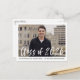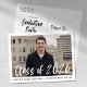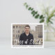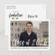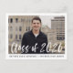 Cartes d'invitation à une fête de fin d'études élégantes et modernes avec la photo du diplômé encadrée de blanc et « Promotion 2026 » en surimpression en écriture pinceau à l'aquarelle blanche. Personnalisez le devant en ajoutant le nom du diplômé et le nom de l'école en noir. L'invitation est retournée pour afficher votre adresse de retour et les détails de la fête de fin d'études en noir.