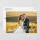 Photo de script lettres à la main Enregistrer la date Carte postale Texte à la main Le mariage photo de conception de script blanc à la main enregistre la carte de faire-part de date - horizontal. Envoyez vos cartes de sauvegarde à jour en tant que couple nouvellement engagé à vos amis et votre famille en utilisant cette carte postale magnifique, tout simplement enregistrer la date avec un script d'écriture manuscrite blanc modèle de superposition de texte. Design par Be Handsome. Remplacez l'exemple de photo par le vôtre. Ajoutez vos renseignements personnels sur le devant et sur le dos.