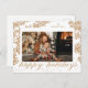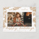 Cette élégante carte postale de vacances présente une bordure dessinée à la main avec un feuillage hivernal doré et un salut en écriture fleurie indiquant "joyeuses fêtes" accentuant une seule photo personnalisable pour une atmosphère de vacances classique et traditionnelle. Le dos est configuré comme une carte postale pour un envoi facile.