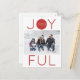 Cette carte postale de vacances chic comporte un texte Joyeux moderne qui encadre votre photo de famille préférée. Personnalisez cette carte moderne avec votre propre nom de famille avec du texte sur l'ornement festif. Personnalisez le verso en saisissant votre propre message ou supprimez le texte pour pouvoir l'envoyer avec votre propre message manuscrit. Personnalisez l'ornement au verso avec le nom de votre famille. Ajoutez votre propre adresse pour un envoi facile.