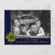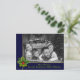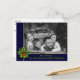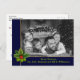 Personnalisez l'avant et l'arrière de cette amusante carte de Noël photo. Votre photo de famille remplissant la carte derrière un cadre bleu et or mis en valeur par une branche de pin et de houx. La bande inférieure contient vos noms et votre vœu de Noël dans une police verte douce. Vous pouvez personnaliser le vœu de vacances au dos, votre adresse de retour et vos noms en écriture près du bas avec de l'espace pour ajouter une note personnelle manuscrite.