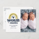 Twins Baby Modèle photo Modern Happy Womb Mates Faire-part Carte postale présente l'une de vos photos préférées de votre nouveau-né jumeau garçon ou fille avec le texte "Womb Mates" dans écriture de calligraphie bleue et jaune à la main, accentué d'un arc-en-ciel et coeur d'amour. Ajoutez des informations supplémentaires telles que le nom de votre nouveau-né et l'information sur la naissance. Au verso, ajoutez votre message personnalisé annonçant l'arrivée de votre nouveau-né ou un message de remerciement de la part des parents et de la famille. CONSEIL PHOTO : centre votre photo avant de la télécharger sur Zazzle. Conçu par ©Evco Studio www.zazzle.com/store/evcostudio