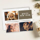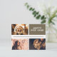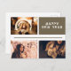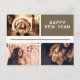 Carte postale de vacances moderne avec trois photos. Ajoutez trois de vos photos de vacances préférées à la carte postale. Le texte de la nouvelle année Happy est en police blanche moderne et tendance sur un arrière - plan gris. La carte postale est idéale pour un jeune célibataire qui souhaite des vacances heureuses à ses amis et à sa famille.