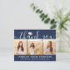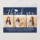Envoyez une note de gratitude élégante avec personnalisation 3 photo collage marine bleu et blanc graduation merci cartes postales. Toutes les images et le libellé sont simples à personnaliser. (CONSEIL EN MATIÈRE DE PLACEMENT D'IMAGE : Une façon simple de centrer une photo exactement comment vous voulez est de la rogner avant de la télécharger sur le site Zazzle.) Ce modèle peut être customisé avec n'importe quel libellé de votre choix comme les plans d'études futurs, le nouveau poste ou la citation inspirante préférée. Si vous préférez écrire votre message à la main, supprimez simplement le texte de l'exemple ou utilisez l'espace supplémentaire au-dessus de la nouvelle adresse et des informations de contact. Le design comprend un arrière - plan bleu marine, un casquette de tableau de mortier blanc, une calligraphie manuscrite, une typographie minimaliste moderne et trois photos de votre choix, telles que des images de haut niveau ou des images de la cérémonie de début. Ces élégantes cartes personnalisées sont une façon tendance et chic de remercier la famille et les amis pour partager votre célébration de remise des diplômes. Félicitations au diplômé !