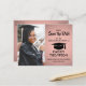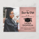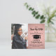 Partagez les nouvelles joyeuses de votre prochaine fête de remise de diplômes ainsi qu'une photo avec ces modernes rose et noir enregistrer les invitations de la carte postale date. Photo et tout le texte sont simples à customiser. Le design comprend une feuille métallique en or rose rose, une calligraphie manuscrite, un nom de diplômé en typographie minimaliste moderne, l'année de classe et l'école, et une photo de votre choix, comme une image ou une image de la cérémonie de début. Cette carte élégante de faire-part de remise de diplômes est une façon élégante et chic de commencer votre fête spéciale.