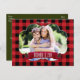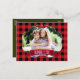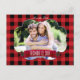 Carte postale photo rustique à carreaux rouges et pommes de pin. Personnalisez avec le texte de votre choix. Articles assortis disponibles.