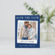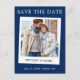 Moderne Simple Rétro Instantané Style Caméra Couple Photo Enregistrer La Date Photo Fiançailles Carte Postale - Navy Blue