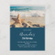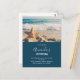 Invitation d'anniversaire avec une photo panoramique. Une grande étoile de mer dressée sur une plage de sable. Une mer bleue magnifique avec des vagues d'écume blanche en arrière-plan.