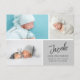 Cette carte postale faire-part de naissance moderne et élégante présente le nom de votre nouveau-né écrit en calligraphie moderne avec vos photos préférées sur une grille. Nom complet et statistiques de naissance. Il y a de l'espace à l'arrière de la carte postale pour écrire un message personnalisé ou supprimer le texte du message manuscrit.