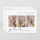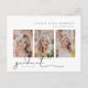 Script de signature, 3 cliché photo, carte postale faire-part de graduation. Caractéristiques, 3 portraits verticaux sur le devant et la typographie noire.