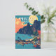 Échappez-vous aux superbes plages de Phuket, Thaïlande, avec cette carte postale d'illustration de style vintage. Doté de bateaux à queue longue, de palmiers et d'un coucher de soleil serein sur des eaux époustouflantes, cette carte postale de collection évoque la beauté intemporelle du paradis tropical de la Thaïlande