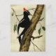Ce bel oiseau noir brillant avec une crête rouge a un regard ludique sur son visage Il est presque souriant. Le titre de cette peinture vintage est Great Crested Woodpecker. Illustré à l'époque victorienne, 1862 par l'artiste et ornithologue américain John Cassin. Il montre son âge avec un peu de mottage de l'arrière - plan crémeux.