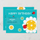 Carte postale Turquoise Happy Birthday pour joueur de Pickleball avec mignons ladybugs de pickleball