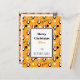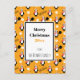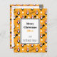 Carte postale de Noël jaune, blanc et noir avec des pingouins jouant au pickleball et aux flocons de neige sur un arrière - plan jaune. Idée idéale pour votre ami ou membre de votre famille
