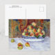 Carte postale avec la peinture d'art, Still Life with Peaches (1881), de l'artiste français Pierre-Auguste Renoir. Un bol de porcelaine bleu et blanc rempli de pêches. Les fruits étaient souvent une source d'inspiration pour ses peintures de natures mortes.