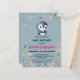 Carte Postale Pingouin bleu mou fleur douce baby shower enfants