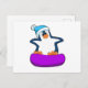 Carte Postale Pingouin faisant du Snowboard avec une planche à n