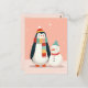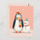 Carte Postale Pingouin mignon avec Snowman Pastel Noël rose
