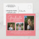 Carte postale d'invitation à la fête de remise de diplômes moderne, tendance et féminine rose et blanc 3-photo avec une police de caractères mignonne.