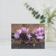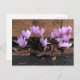 Carte postale avec photo de cyclamen rose fleurs hederifolium en automne.