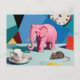 Carte Postale Pink Elephant Mouse Broken Teacup Clock Surreal