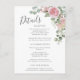 Carte Postale Pink Floral Rose Wedding Details Enclosure Card
