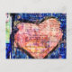 Carte Postale Pink Heart on Blue Paint Mixed Media Art