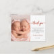 Élégant Script Photo Girl Twins Nouveau-né Babies Merci Carte postale. Doté d'un texte simple moderne magnifique "merci" dans une calligraphie manuscrite cursive script swash tail de police en feuille d'or rose (ou feuille rose rougit) et message personnel préfait Grand pour la petite fille. Facile à personnaliser avec vos photos et détails bébé.