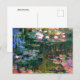 Carte postale d'art avec le tableau du paysage, Water Lilies (1917) de Claude Monet (1840-1926). Un étang de nénuphars aux calottes de fleurs blanches et roses se reflétant au large de l'eau, inspiré de ses propres jardins aquatiques à Giverny, France.