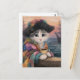 Carte Postale Pirate Cat With a Coffee