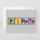 Le mot Pirate épelé à l'aide de carrés colorés représentant des éléments du tableau périodique. Une jolie idée cadeau pour quiconque aime les pirates, surtout s'ils ont aussi un intérêt pour la science ou la chimie. Idéal aussi pour "parler comme une journée de pirate" ! Phosphore + Iode + Radium + Tellerium = PIRaTe