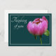 Carte Postale Pivoine rose Fond cyan Pensée pour vous