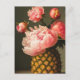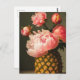Un bouquet de pivoines roses dans un vase en forme d'ananas