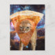 Carte Postale Pizza Chat dans l'espace avec Pizza Slice