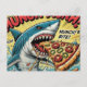 Cette carte présente une illustration dynamique de style bande dessinée d'un requin dévorant voracement une tranche de délicieuse pizza pepperoni. Le fond est rempli de texte ludique comme "MUNCH ! MUNCH !" et "BITE !" en lettres grasses et colorées, renforçant l'ambiance amusante et énergique de l'œuvre d'art. L'expression exagérée du requin et le fromage qui coule rendent ce design à la fois humoristique et accrocheur, parfait pour quelqu'un avec un sens de l'humour particulier. Idéale pour toutes les occasions, cette carte fera sourire les amateurs de pizza, les fans de requins et tous ceux qui apprécient l'art unique et fantaisiste.