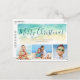 Envoyez des Bonnes Fêtes chaudes avec cette carte de Noël sur le thème de la plage. Le carte photo de vacances côtier dispose d'une vague d'aquarelle vert mer sur une rive sablonneuse. Texte modifiable au-dessus de la vague : "Joyeux Noël" en calligraphie bleu-vert. Trois photos se trouvent sous la vague peinte. Pour personnaliser, ajoutez vos noms et trois photos préférées. Au verso, vous pouvez écrire un message personnel plus long aux destinataires.