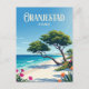 La plage se sent expansive et tranquille, avec du sable blanc brillant et de l'eau claire qui scintille sous le soleil, créant un paysage visuel propre et saisissant.